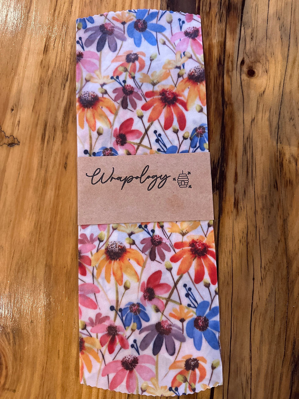 At Wrapology, our mission is to improve daily living by offering natural, organic, and non-toxic products. Our wraps are composed of 100% cotton fabric, which is infused with a mixture of beeswax, organic jojoba oil and tree resins. These REUSABLE, WASHABLE, compostable, food-grade wraps are meant to TAKE THE ROLL (pun intended!!) OF FOIL, PLASTIC WRAP, & PLASTIC CONTAINERS. Our anti-microbial/anti-bacterial wraps may even keep your cheese and produce fresh longer. We invite you to try out our adorable and vibrant products, which complement any style or way of life.